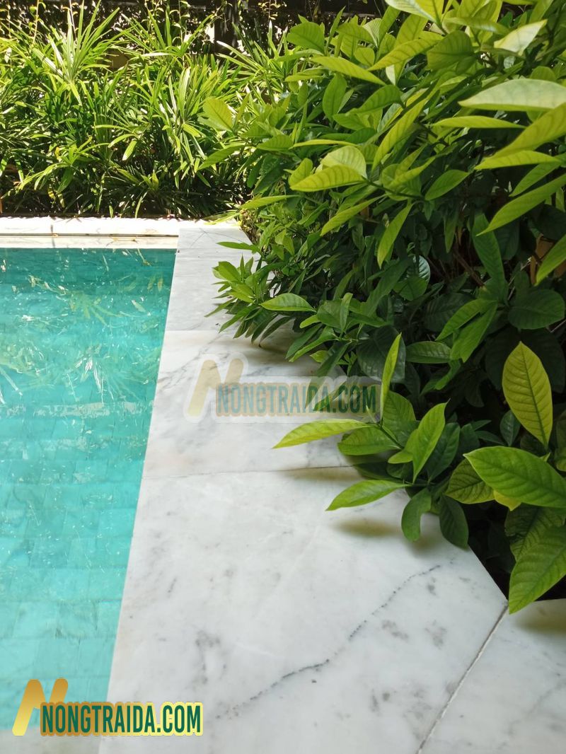 Với kích thước 10*10 cm, sản phẩm này phù hợp để lát nền hoặc các vùng xung quanh bể bơi, tạo điểm nhấn cho không gian ngoại thất. Đá mềm màu trắng xám mang lại cảm giác sang trọng, tinh tế và dễ dàng phối hợp với các loại hồ bơi khác nhau.