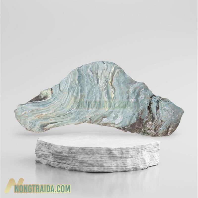 Đá tảng xanh Nhật Bản 16x72x34cm Dài x Rộng x Cao: 16cm x 72cm x 34cm Đá tảng xanh Nhật Bản có kích thước 16x72x34cm là một tác phẩm tự nhiên độc đáo và đẹp mắt trong nghệ thuật trang trí. Với chiều dài 16cm, chiều rộng 72cm và chiều cao 34cm, tảng đá này mang đến sự hài hòa và cân đối trong tỷ lệ kích thước. Màu xanh của đá tạo ra một vẻ đẹp tinh tế, thanh lịch và gợi nhớ đến thiên nhiên trong lành của Nhật Bản. Sự kết hợp giữa kích thước và màu sắc của tảng đá này tạo nên một điểm nhấn độc đáo cho không gian trưng bày hay vườn cây cảnh. Với kích thước lớn như vậy, tảng đá xanh Nhật Bản này có thể được sử dụng để tạo điểm nhấn cho không gian nội thất hoặc ngoại thất, làm tăng thêm vẻ đẹp tự nhiên và sự sang trọng cho môi trường sống. Sự kết hợp giữa hình dáng tự nhiên của đá và sự cẩn thận trong việc chọn lựa tạo ra một sản phẩm trang trí độc đáo và đẳng cấp.