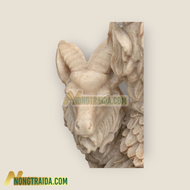 Tượng dê núi bằng đá cẩm thạch vàng có kích thước 112x60x50cm là một tác phẩm nghệ thuật độc đáo và tinh xảo trong nghệ thuật điêu khắc đá truyền thống của Việt Nam. Được chế tác từ loại đá cẩm thạch quý hiếm, màu vàng rực rỡ, tượng dê núi này mang đến vẻ đẹp tự nhiên và sức sống mạnh mẽ.. Với chiều cao 112cm, chiều rộng 60cm và chiều sâu 50cm, tượng dê núi này được tạo hình tỉ mỉ, từng chi tiết nhỏ như lông dê, cánh hoa, hay đôi mắt sáng lấp lánh. Bằng sự khéo léo của người nghệ nhân, tượng dê núi bắt lấy vẻ uy nghi của con dê trong thiên nhiên, kết hợp với vẻ đẹp sang trọng và quý phái của đá cẩm thạch vàng.. Đá cẩm thạch vàng không chỉ là vật liệu để tạo ra tác phẩm nghệ thuật mà còn mang theo ý nghĩa tâm linh sâu sắc trong văn hóa Việt Nam. Màu vàng tượng trưng cho sự giàu có, may mắn và thịnh vượng, khiến cho tượng dê núi trở thành biểu tượng của sự sung túc và thành công trong đời sống.. Với kích thước lớn và vẻ đẹp tinh xảo, tượng dê núi bằng đá cẩm thạch vàng không chỉ là một sản phẩm nghệ thuật mà còn là biểu tượng của sự tài lộc và may mắn, đem lại sự sang trọng và đẳng cấp cho không gian nơi nó được trưng bày.. Bard