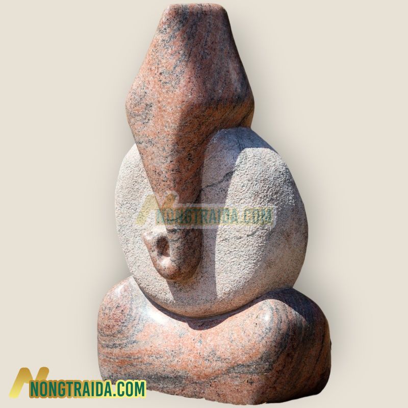 Chi tiết tượng: Chất liệu: Đá Granite Đỏ Đa Màu từ Bangalore, được khắc tay tại Tamil Nadu, Ấn Độ; Chiều cao tổng cộng bao gồm đế: 30 inch hoặc 76cm ; Chiều rộng và chiều sâu của đế: 17 x 6 inch; Trọng lượng: Khoảng 400 pounds hoặc 180 kg. Một biểu hiện hiện đại của Ganesha dưới dạng trừu tượng với khuôn mặt và vòi Ganesha được tạo thành từ các đường cong đơn giản và cơ thể của Ganesha được để lại một cách thô cứng, tạo nên sự tương phản tuyệt vời với ánh sáng được mài bóng của đầu và chân Ganesha. Ganesha không có mắt, điều này hoàn hảo cho người Hindu muốn có một tượng Ganesha cho vườn vì puja sẽ không phải là nhiệm vụ cần thiết cho một bức tượng thiếu mắt. Bức tượng Ganesha trừu tượng hiện đại này hoàn toàn là độc nhất vô nhị, được khắc tay từ một khối đá màu đỏ, cam, đen và xám hiếm có vân khi mài bóng, tạo ra sự tương phản tuyệt vời với các phần chưa được mài bóng của bức tượng.LIÊN HỆ NGAY VỚI CHÚNG TÔI