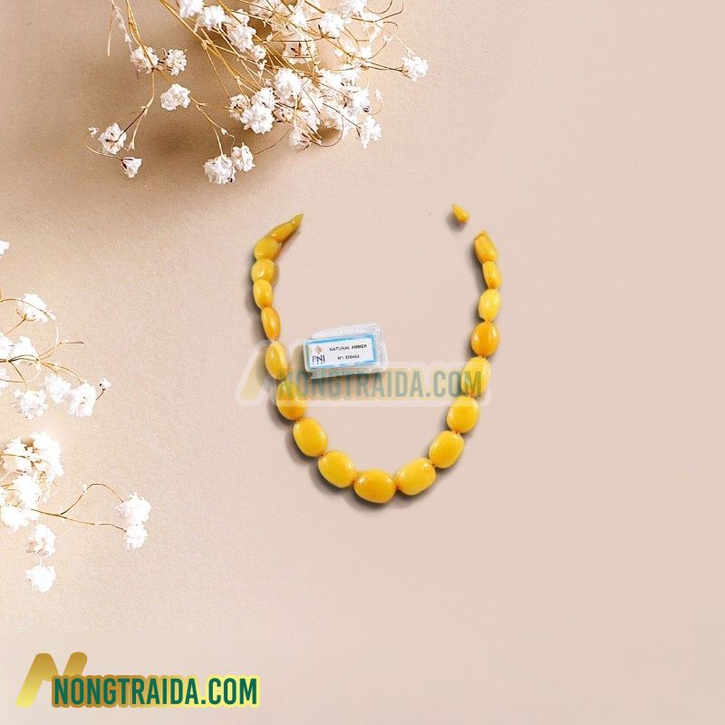 Vòng cổ Hổ Phách vàng sữa cao cấp là một sản phẩm điêu khắc tự nhiên độc đáo, mang đến vẻ đẹp tinh tế và sang trọng cho người sử dụng. Chất liệu chính của sản phẩm là hổ phách tự nhiên, không qua bất kỳ xử lý nào để giữ nguyên vẻ đẹp tự nhiên và giá trị của loại đá quý này. Với màu sắc vàng tự nhiên, vòng cổ được thiết kế với kích thước 15.94 x 13.77 x 11.03 mm và độ dài 48cm, gồm 25 hạt hổ phách tự nhiên. Sản phẩm tuân thủ tiêu chuẩn chất lượng cao cấp, đã được kiểm định bởi trung tâm giám định đá quý uy tín. Mã sản phẩm 220453 đặc biệt phù hợp với những người có hợp mệnh Kim và Thổ, mang lại may mắn và bảo vệ cho người sử dụng. Vòng cổ Hổ Phách vàng sữa không chỉ là trang sức đẹp mắt mà còn được sử dụng trong các mục đích phong thủy và là một lựa chọn tuyệt vời cho việc tặng quà. Sản phẩm được cam kết bảo hành vĩnh viễn về màu sắc và dây xỏ, đi kèm với 01 bộ tem và phiếu kiểm định chất lượng. Đặc biệt, chúng tôi cam kết hoàn tiền gấp 10 lần nếu sản phẩm không phải là hổ phách tự nhiên, đảm bảo sự tin tưởng và hài lòng tuyệt đối của khách hàng khi sử dụng sản phẩm này.